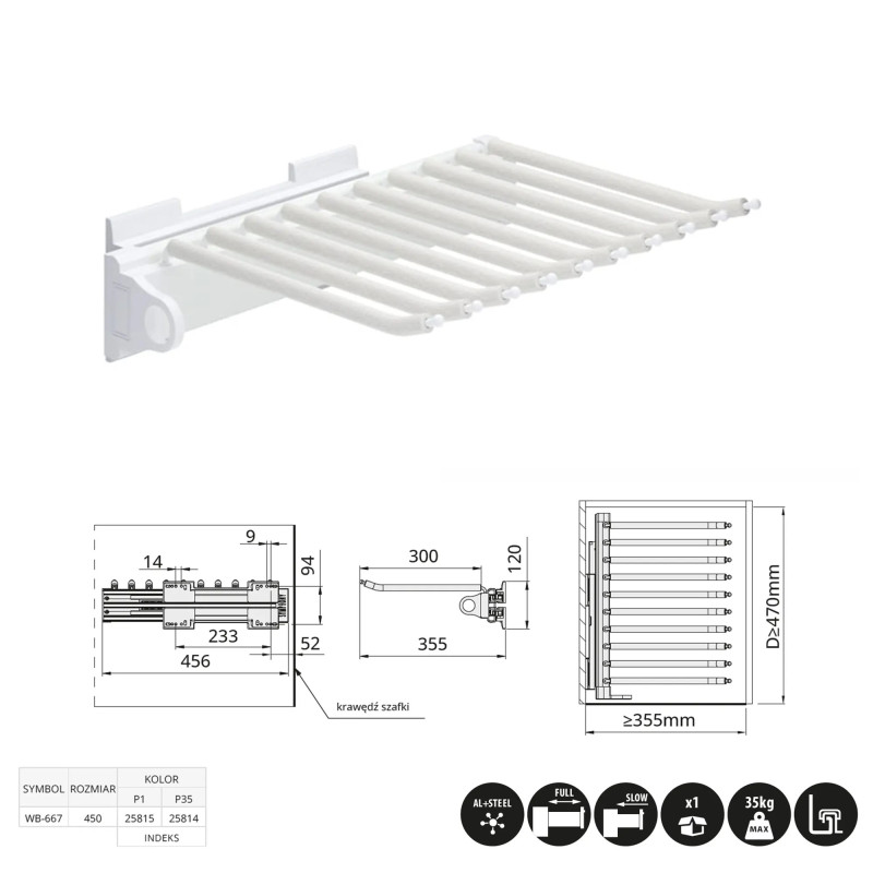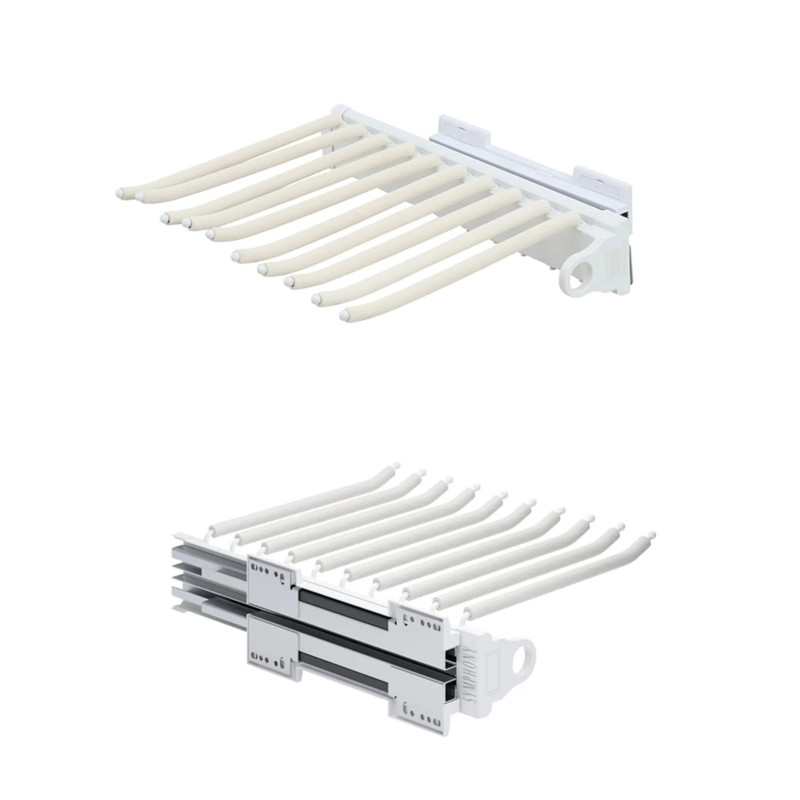 Wieszak na spodnie boczny WB-667 SYMPHONY to elegancki i funkcjonalny wysuwny wieszak boczny przeznaczony do garderób i zabudów szafkowych, który pozwala wygodnie przechowywać spodnie w sposób uporządkowany i estetyczny.