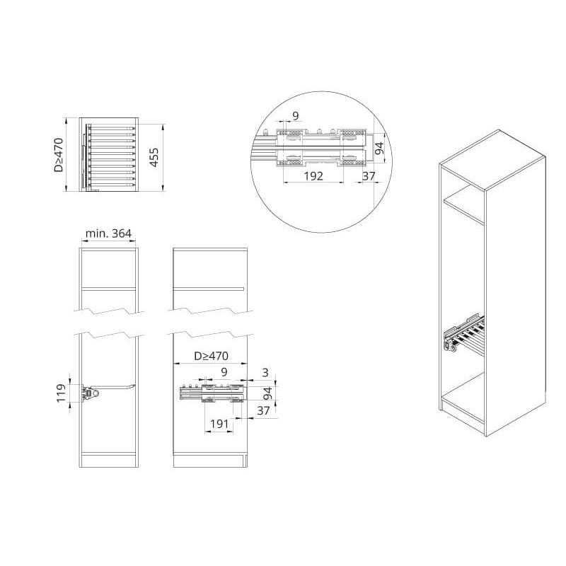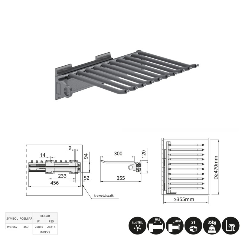 Wieszak na spodnie boczny WB-667 SYMPHONY to elegancki i funkcjonalny wysuwny wieszak boczny przeznaczony do garderób i zabudów szafkowych, który pozwala wygodnie przechowywać spodnie w sposób uporządkowany i estetyczny.