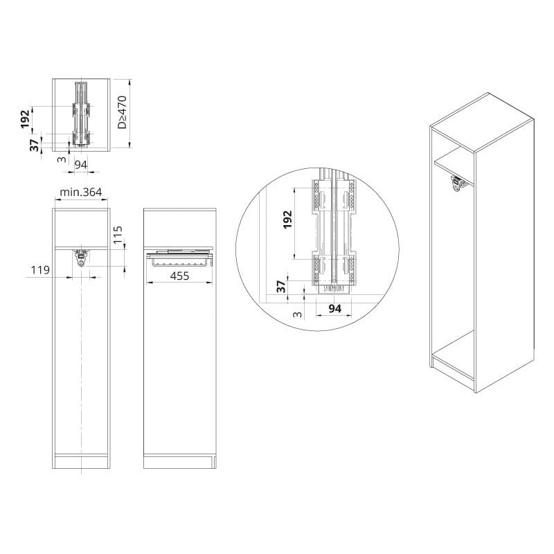 Wieszak WB-669 ATM to wysokiej klasy, wysuwny system garderobiany, zaprojektowany z myślą o maksymalnej wygodzie i kompaktowym zagospodarowaniu przestrzeni wewnątrz szafy. Dzięki niemu zyskujesz łatwy dostęp do ubrań bez konieczności wchodzenia do wnętrza szafy — wystarczy wysunąć wieszak, aby wygodnie zawiesić lub zdjąć odzież.