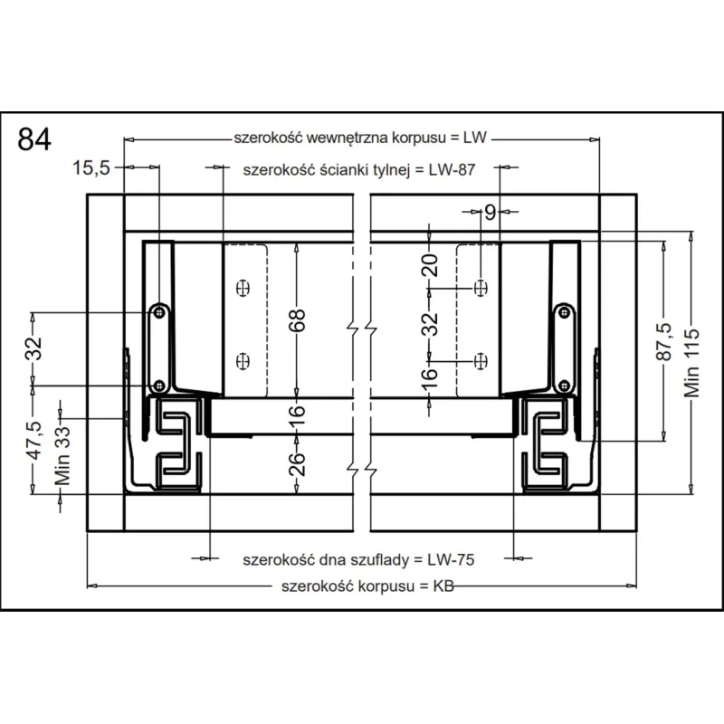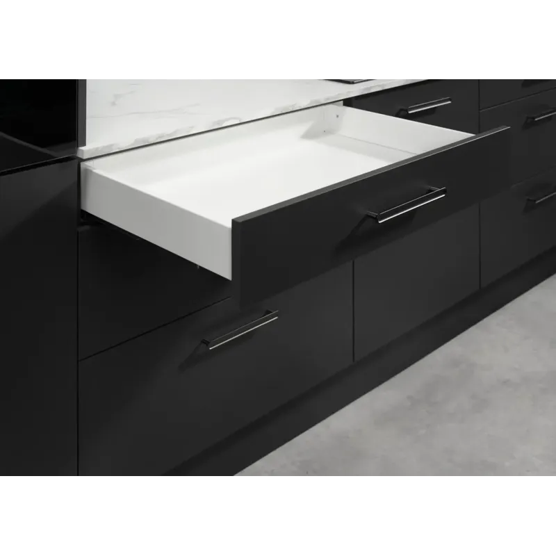 Szuflada Matrix S Slim ma szereg zastosowań w kuchni, garderobie jak i w meblach wolnostojących. Doskonała do frontów wpuszczanych i nakładanych. Cienkie ścianki boczne nie zabierają miejsca do przechowywania. Pełen wysuw i cichy domyk to komfort użytkowania. łatwy montaż, regulacja od wewnętrznej strony. Maksymalne obciążenie szuflady to 35kg. Dostępna w czterech wymiarach wysokości boku: 86,135,167,199mm.