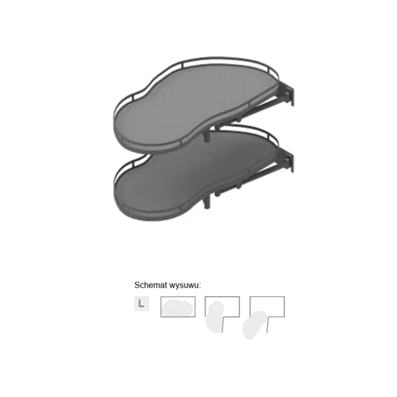 CORNER ERGO OPTIMA to nowoczesny system do zagospodarowania szafek narożnych, który pozwala w pełni wykorzystać trudnodostępne miejsce w kuchni. Dzięki innowacyjnemu mechanizmowi półki wysuwają się płynnie i cicho poza obrys szafki, zapewniając łatwy dostęp do całej zawartości. Solidna konstrukcja i ciche prowadnice gwarantują komfort użytkowania i długą żywotność systemu. Półki mają powłokę antypoślizgową, co zapobiega przesuwaniu się garnków czy naczyń.