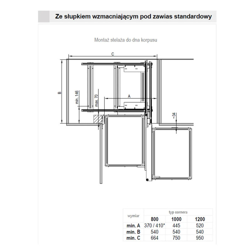 Przeznaczenie: narożne szafki kuchenne z frontem na zawiasach standardowych lub równoległych;