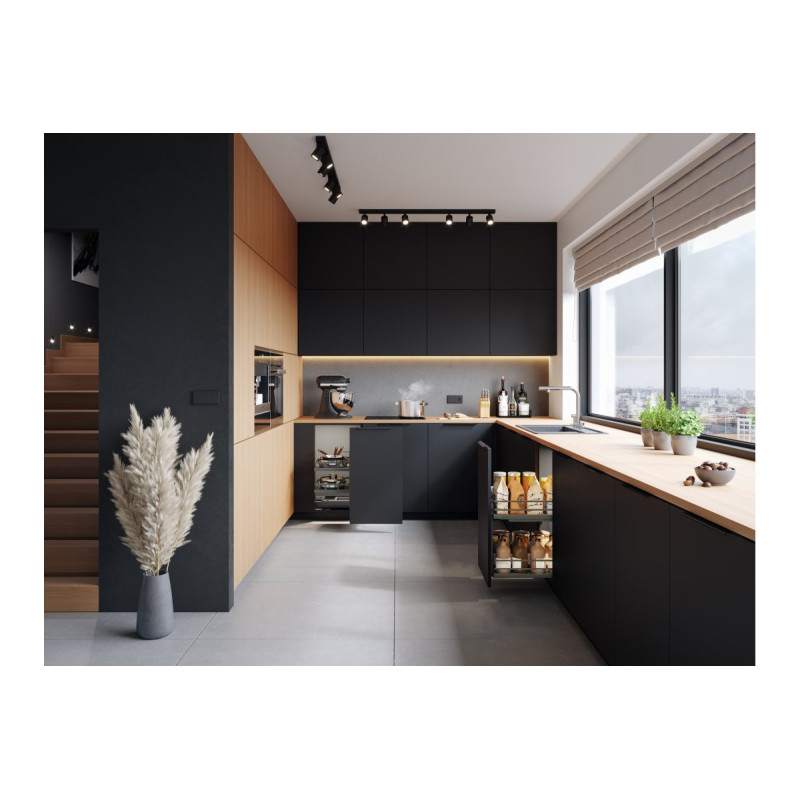 Kosz Movix Pro GTV KO-300BO to funkcjonalny, wysuwany system typu cargo, przeznaczony do szafek dolnych kuchennych o szerokości zewnętrznej 300 mm. Model z serii MOVIXPRO oferuje dwie półki z pełnym dnem wykończone matą antypoślizgową, co zapewnia stabilność przechowywanych produktów i estetyczny wygląd wnętrza szafki. Konstrukcja umożliwia montaż boczny (kosz mocowany po bokach korpusu) oraz zapewnia pełny wysuw, aby dostęp do zawartości był wygodny i szybki.