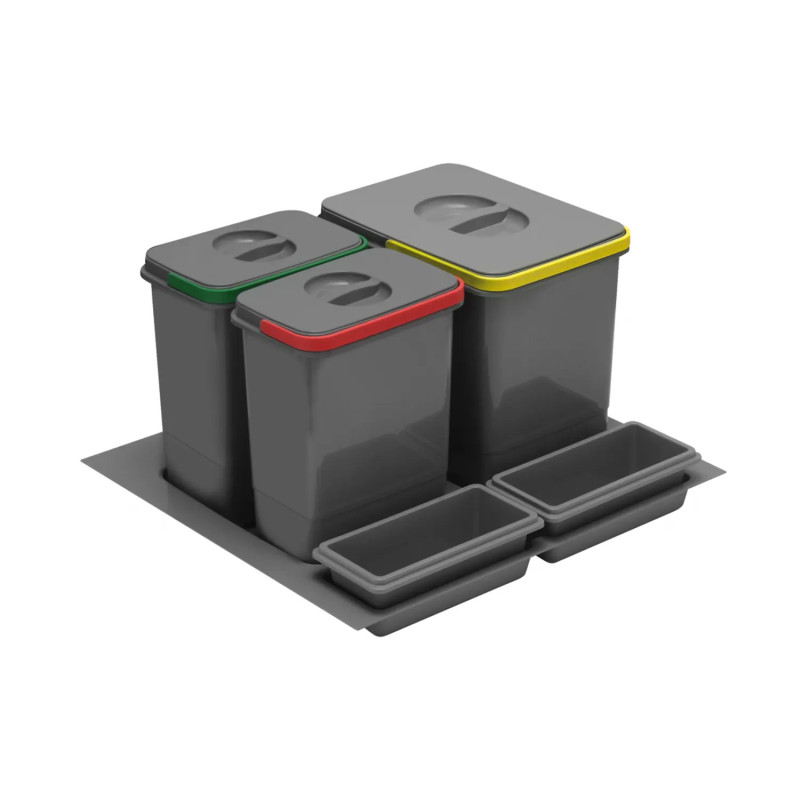 Nowoczesny kosz do segregacji odpadów MULTINO marki GTV to rozwiązanie zaprojektowane z myślą o funkcjonalnych i estetycznych wnętrzach kuchennych, gospodarczych czy biurowych. Model 600 z pojemnościami 1×15L+2x7L umożliwia wygodne i efektywne sortowanie odpadów (np. szkło, papier, tworzywa) w szafce o szerokości 60 cm.
