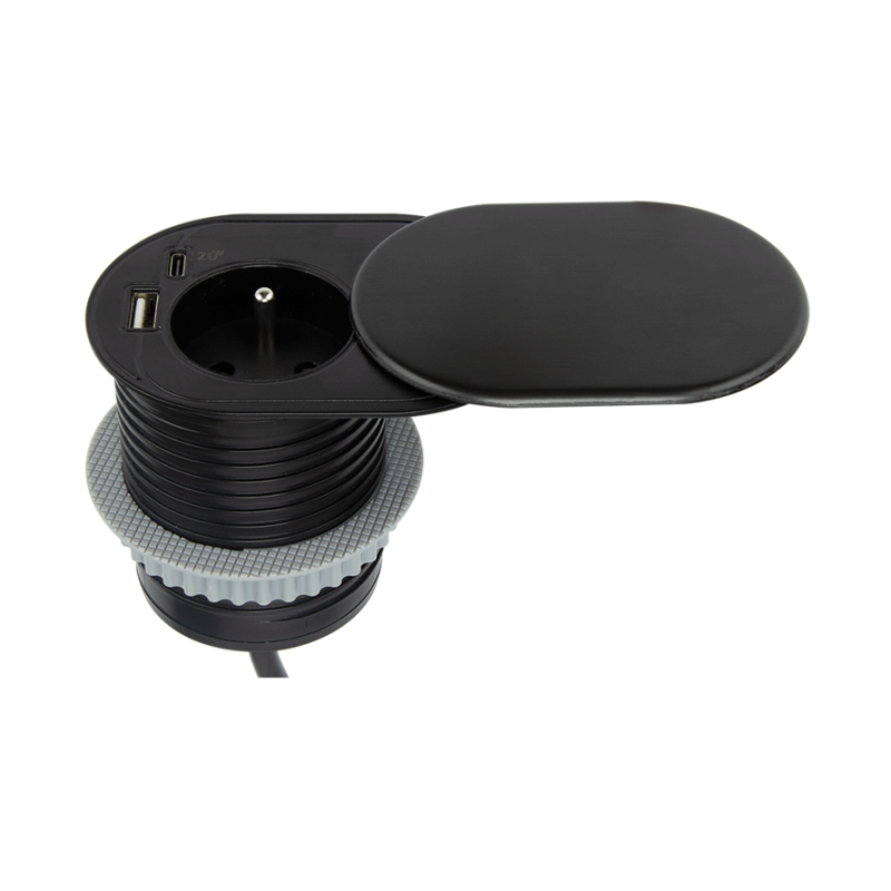 Solidna obudowa oraz prosty montaż sprawiają, że produkt doskonale sprawdza się w nowoczesnych zabudowach meblowych, stanowiskach pracy czy wyspach kuchennych.