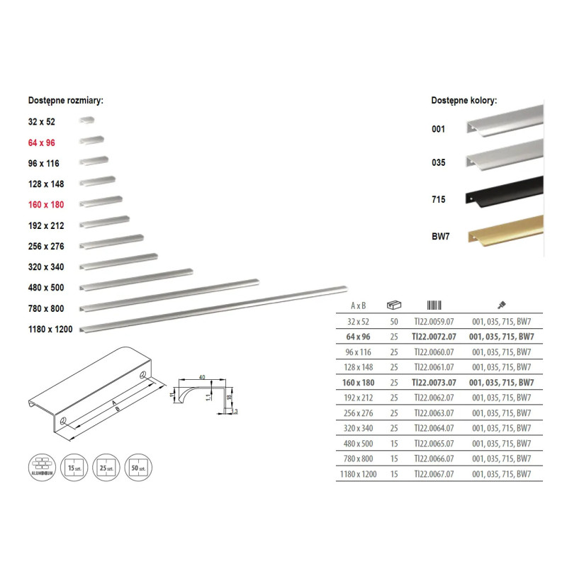 Uchwyt Easy 160 mm aluminium. TI22.0003.14.529